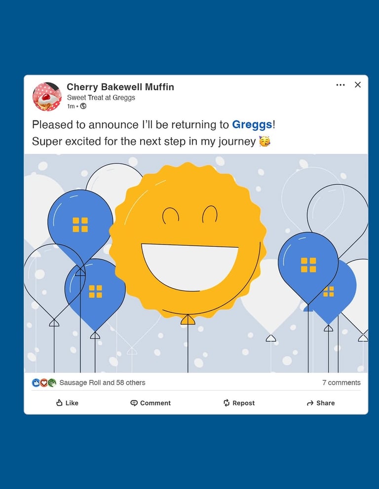 I co-led the creation of all reactive and BAU content for Greggs across all their social channels (X, Threads, TikTok, Instagram and Facebook), always staying true to their fun, silly and unmistakably British TOV. Greggs’ TikTok account was relatively new, but in just a few months, it gained more than 130k+ followers, and we established the brand as a social trendsetter.